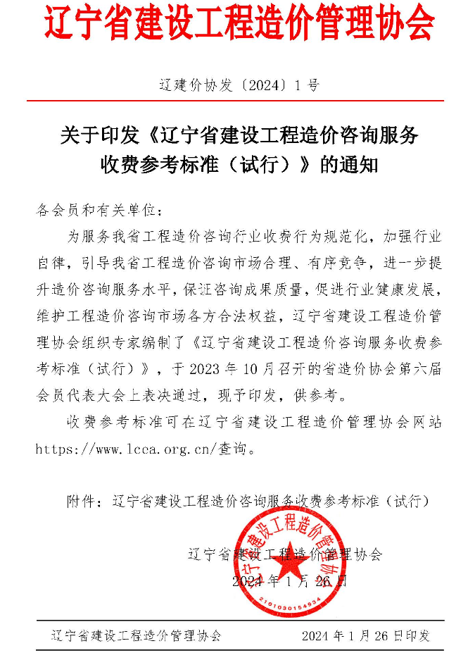 辽宁省建设工程造价管理协会《关于印发<辽宁省建设工程造价咨询服务收费参考标准(试行)>的通知》