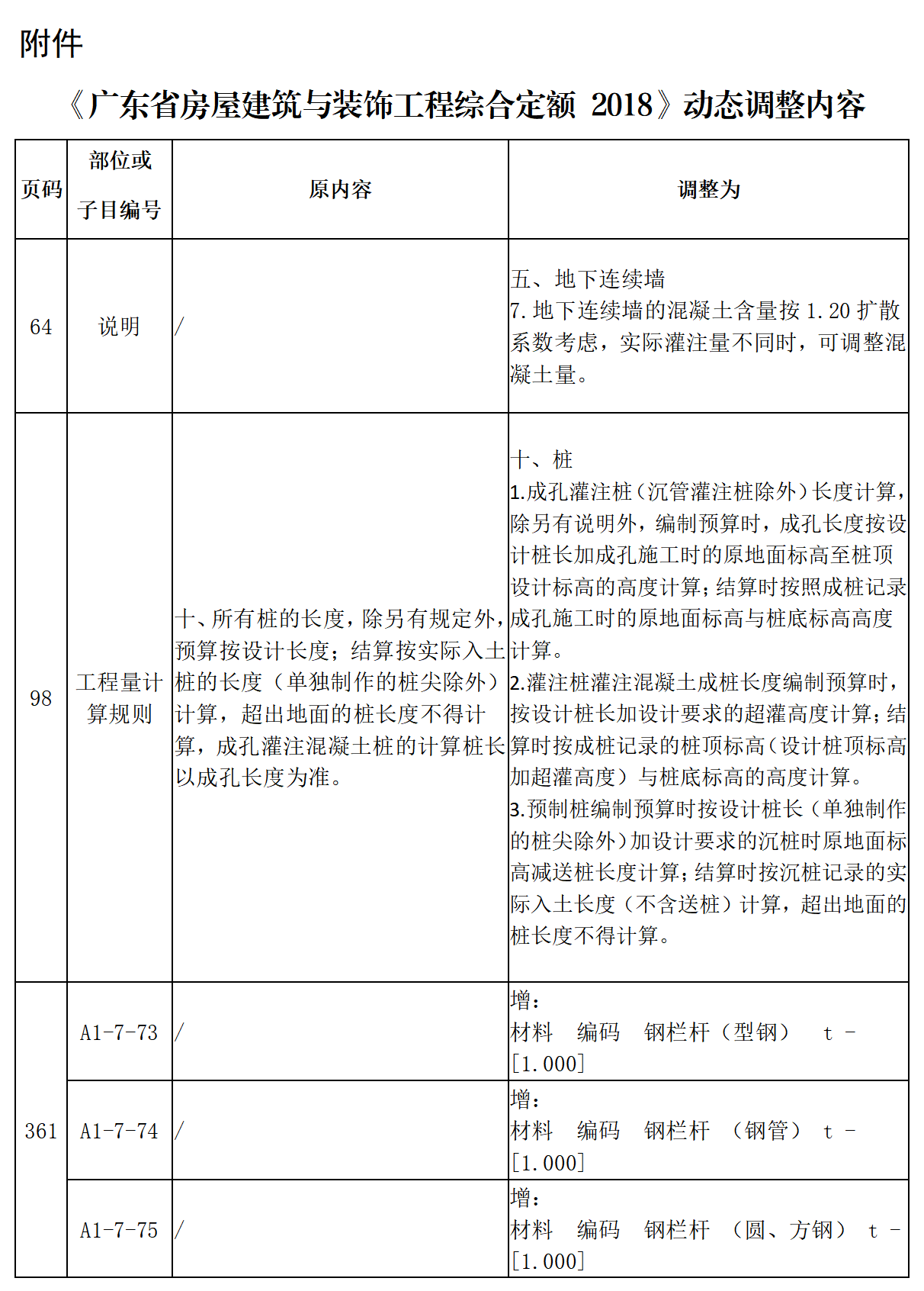 附件:《广东省房屋建筑与装饰工程综合定额 2018》动态调整内容