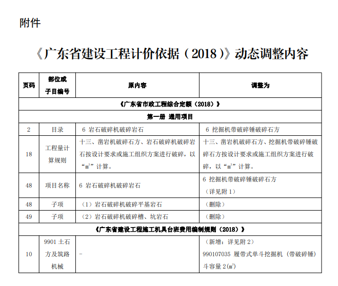 附件:《广东省建设工程计价依据(2018)》动态调整内容