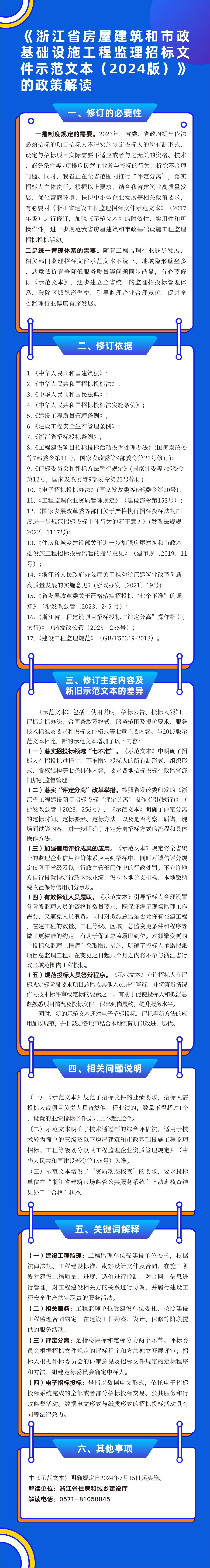 为进一步规范我省房屋建筑和市政基础设施工程监理招标投标行为,保障招标人和投标人的合法权益,促进工程监理行业健康有序发展,现将《浙江省房屋建筑和市政基础设施工程监理招标文件示范文本(2024版)》印发你们,请遵照执行。
