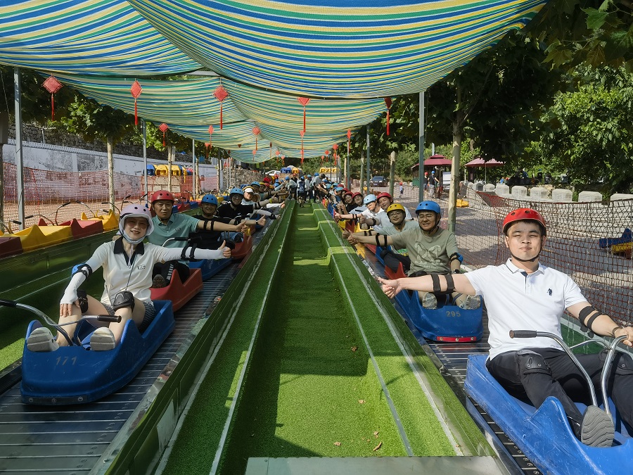 第二部分是结合今年党纪学习教育开展,在平谷组织党建活动,参观了鱼子山抗战纪念馆,重温了入党誓词,进行了管理层党员突击队和青年突击队授旗仪式,使大家了解了历史,建立了共识,从而增强了团队的凝聚力。随后公司组织大家在大峡谷景区和梨树沟景区进行了游览。