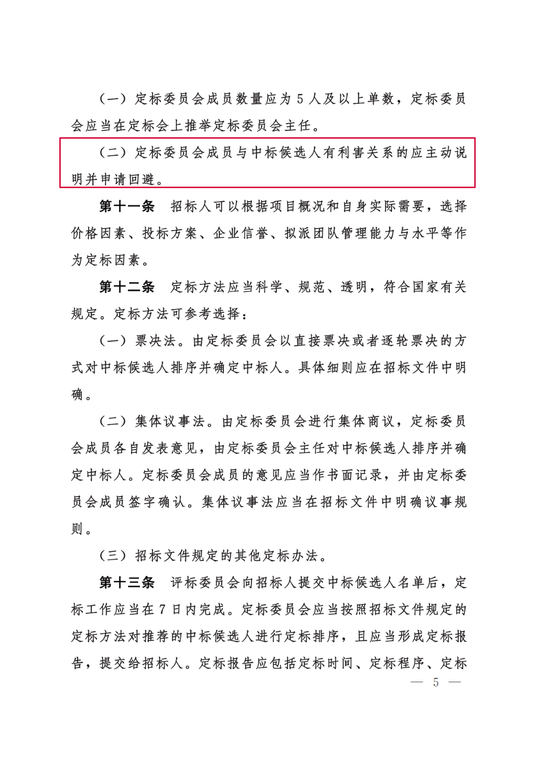 第三条 本办法所称“评定分离”是指将评标和定标分为两个阶段进行。评标委员会根据招标文件规定的评标程序和方法独立开展评审,向招标人推荐不排序的中标候选人,并出具评审意见;由招标人根据评标委员会的评审意见及招标文件规定的定标程序和方法,组建定标委员会确定中标人。