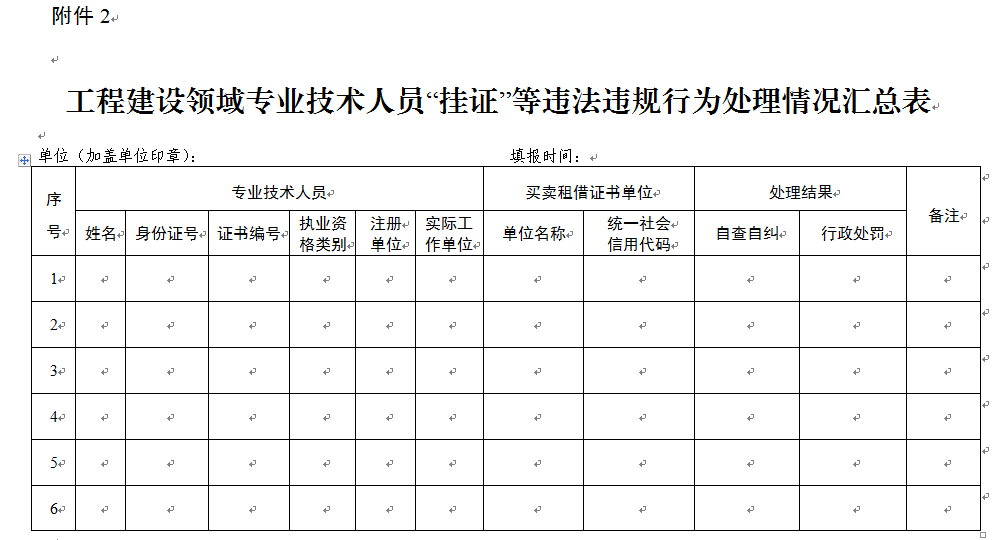 2.工程建设领域专业技术人员“挂证”等违法违规行为处理情况汇总表