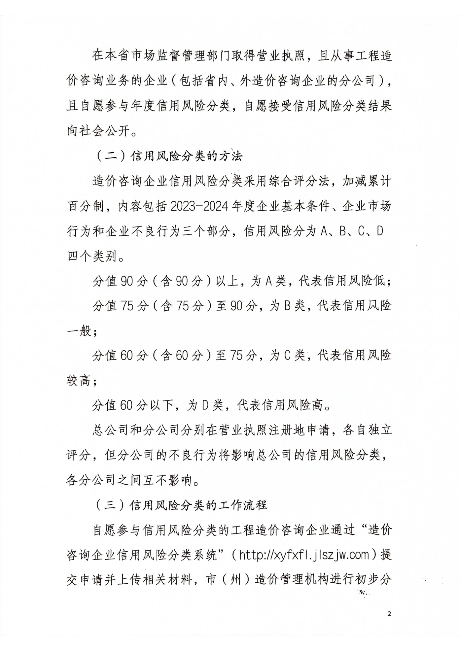 吉林省建设工程造价管理站关于发布《2023-2024年度全省工程造价咨询企业信用风险分类工作方案》的通知