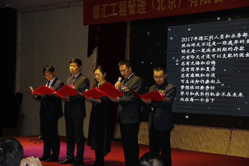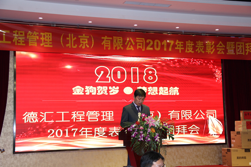 伴随着2018年春天的脚步,德汇工程管理(北京)有限公司于2018年2月2日(周五)在北京盈坤维景酒店召开2017年度表彰会暨团拜会。公司员工、集团兄弟公司代表共计210余人参加了本次年会。
