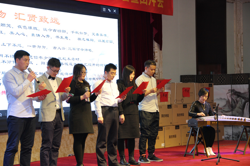 年会上,在公司高管进行了热情洋溢的诗朗诵表演后,主持人宣布年会开始,随后,王维东总经理发表了新年致辞,勉励各部门员工在2017年双亿佳绩的基础上再接再厉,并衷心感谢大家多年对德汇公司事业的鼎力支持;段少佐副总经理宣读了2017年优秀员工表彰通报,并对2017年度优秀员工进行了颁奖,李红飞代表优秀员工发言,表达了继续为公司勤恳工作的决心;造价一部二部全体100余位员工共同演唱了《站起来》,提振了整个年会的气势和气氛,各部门陆续带来精彩纷呈的表演;最后,詹芙蓉董事长发表了祝酒词,晚宴正式开始,在晚宴进行过程中,穿插了紧张刺激的抽奖环节,将晚宴一次又一次推向高潮。