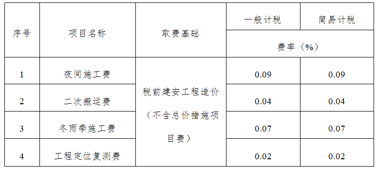 调整“2020定额”其他总价措施项目费计取标准中的取费基础和费率,如下表所示:
