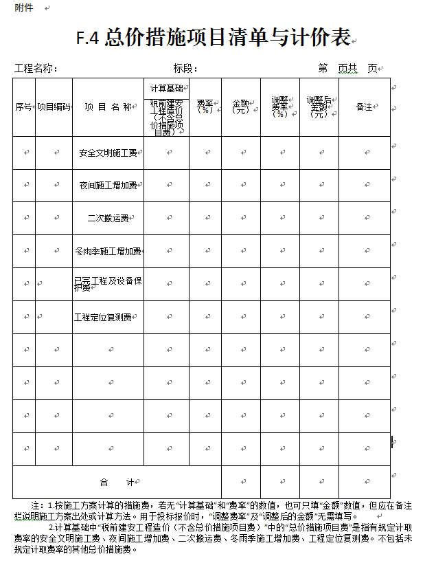 调整“2020定额”工程量清单计价表中“总价措施项目清单与计价表”,具体调整详见附件。