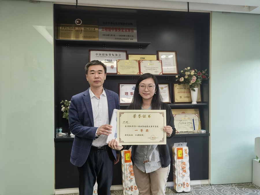 赛后,公司总工程师段少佐为获胜选手颁奖,审计中心伊娜代表获奖选手进行了发言。