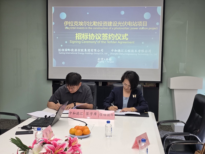 5月24日下午,愷领国际能源控股集团有限公司(以下简称“愷领国际”)与开云手机登录入口(以下简称“中和德汇”)就伊拉克埃尔比勒投资建设光伏电站项目正式签约《招标代理协议》。