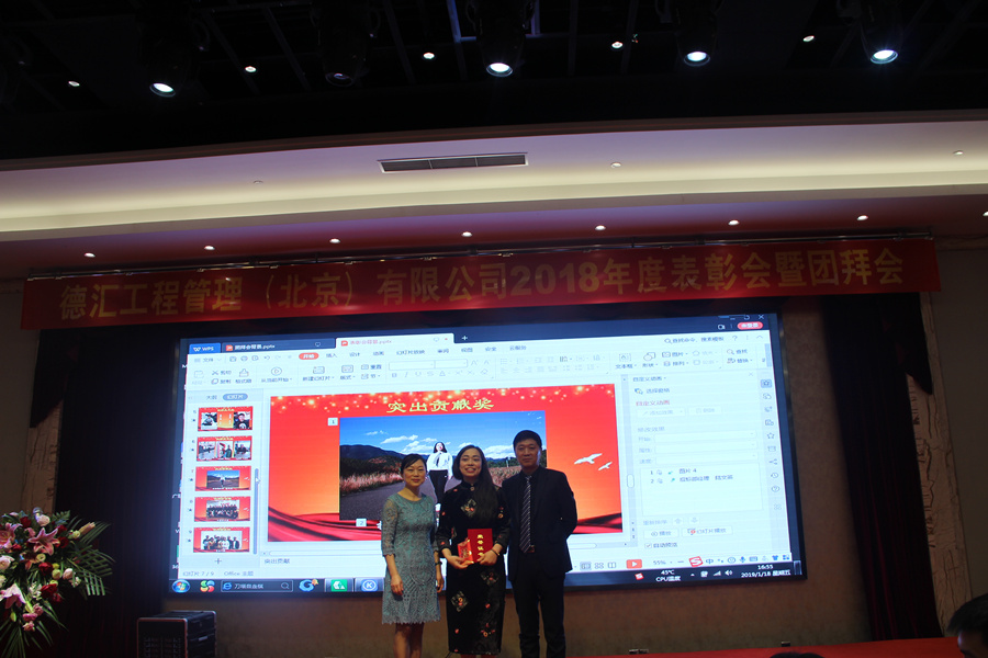 德汇工程管理(北京)有限公司于2019年1月18日(周五)在北京盈坤维景酒店召开2018年度表彰会暨团拜会。集团公司领导、兄弟公司代表、公司领导、分公司和运营中心事业部负责人、公司全体员工共计310余人参加了本次年会。