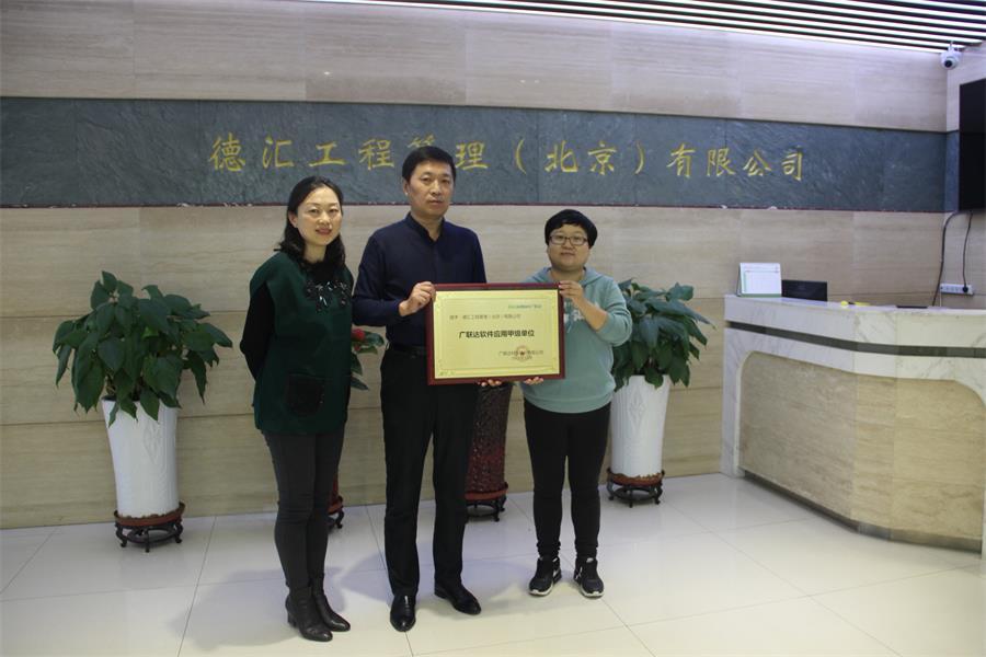 2019年11日19日,我公司董事长詹芙蓉女士、总经理王维东先生接受了广联达公司颁发的软件应用甲级单位奖章。