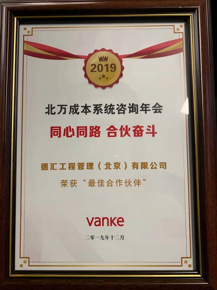 2019年12月6日下午4点,德汇工程管理(北京)有限公司受邀参加由北京万科组织的2019年度成本管理研讨会及表彰大会,造价一部经理林晓东代表德汇造价部分享了诸多与北京万科合作心得及管理经验,受到一致好评。